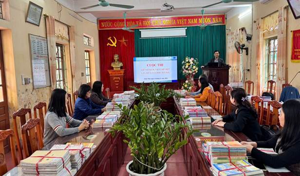 Hình ảnh Ban giám khảo làm việc trong Hội thi “Giữ vở sạch, viết chữ đẹp”